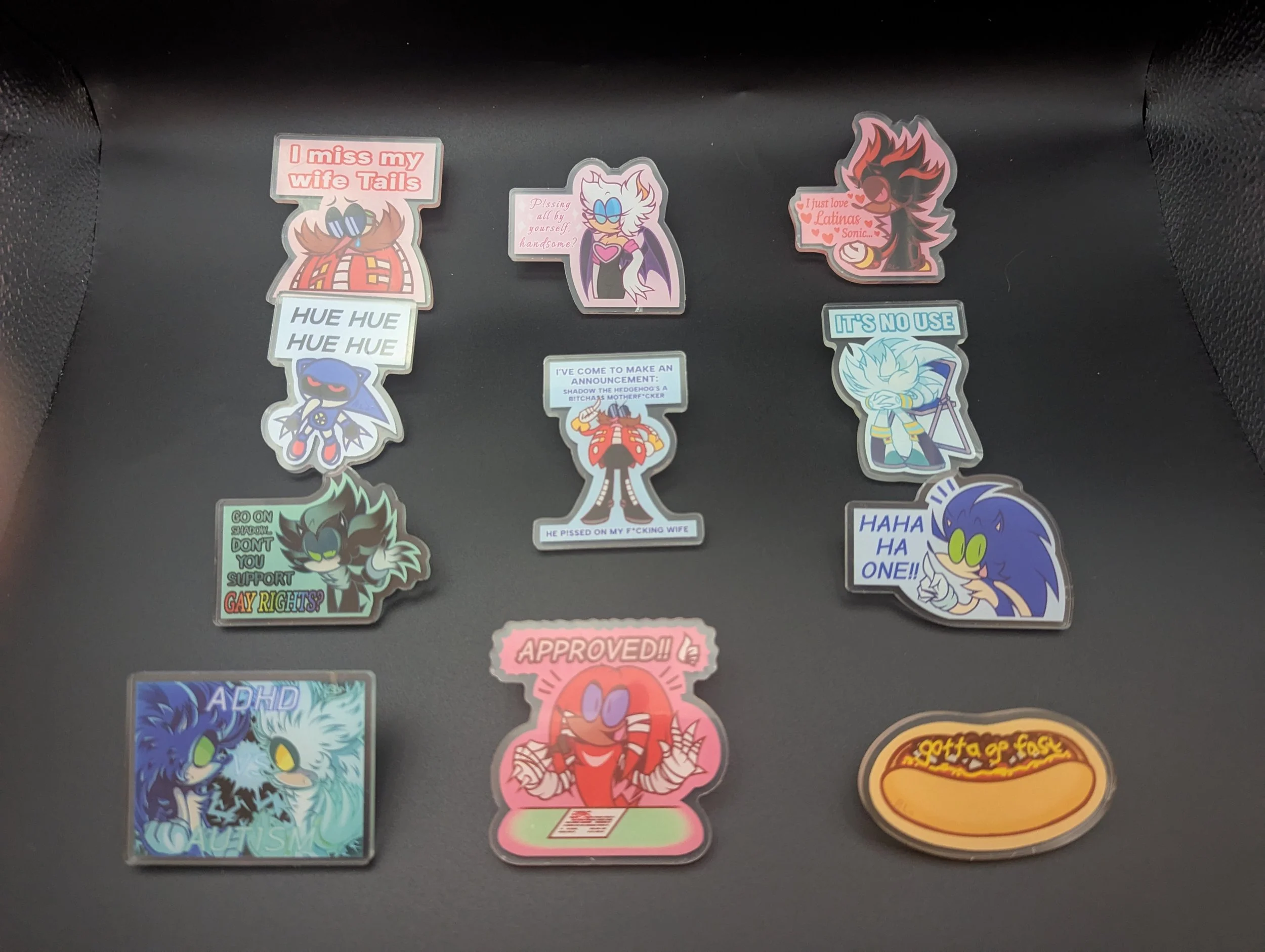 Categories: Select a Category VOCALOID SONIC DELTARUNE SPLATOON HAZBIN HOTEL SANRIO MINECRAFT HORROR/SLASHERS NEEDY STREAMER OVERLOAD OTHER Shop VOCALOID | SONIC | DELTARUNE | SPLATOON | HAZBIN HOTEL | SANRIO | MINECRAFT | HORROR/SLASHERS | NEEDY STREAMER OVERLOAD | OTHER | Vocaloid Keychains $7.00 Vocaloid Stickers $2.00 Vocaloid Pins $6.00 Hazbin Hotel Keychains $7.00 Hazbin Hotel Stickers $2.00 Deltarune Keychains $7.00 Deltarune Stickers $2.00 Deltarune Large Stickers $5.00 Deltarune Sticker Sheet $5.00 Deltarune Fun Gang Standee $15.00 Deltarune Tenna Standee $15.00 Sonic Heroes Keychains $7.00 Sonic Heroes Stickers $2.00 Sonic Villain Keychains $7.00 Sonic Villains Stickers $2.00 XL Sonic Meme Stickers $5.00 XL Sonic Song Stickers $5.00 Sonic Meme Pins $7.00 Sonic Song Pins $7.00 Sonic Chao Sticker Sheets $5.00 Sanrio Keychains $7.00 Sanrio Stickers $2.00 Sanrio Pins $6.00 Splatoon Keychains $7.00 Splatoon Stickers $2.00 Minecraft Keychains $7.00 Minecraft Stickers $2.00 Miscellaneous Keychains $7.00 Miscellaneous Stickers $2.00 Custom Buttons! $3.00 Hatsune Miku print from $5.00 Miku and the World print from $5.00 Glitchy Miku print from $20.00 Trans Miku print from $5.00 Hagane Miku print $20.00 Len Kagamine print from $5.00 "FLoWERSABBATH" Hagane vFlower print from $5.00 "Love is War" Eleanor Forte print from $5.00 "Two of a Kind" (Ghost and Pals) mini print $5.00 Sonic Movie 5 Fanmade print from $5.00 Hedgehog Trio print from $5.00 Blue n' Green Sonic print from $5.00 Sonic VS. Shadow print from $5.00 Sonic VS. Silver print from $5.00 Silver and Mephiles print from $5.00 Fun Gang print from $5.00 Tenna print from $5.00 Spamton Neo print from $5.00 Deep Cut print (splatoon style) from $5.00 Deep Cut print (my style) $20.00 Frye print $20.00 Hold, Release; Rakshasa and Carcasses Shiver print from $5.00 Shiver print from $5.00 Marie print from $5.00 Side Order Marina print from $5.00 Splatbands Final Fest print $20.00 Off the Hook and Diss-Pair print $20.00 Namida Octoling print from $5.00 Trans Namida print from $5.00 Harmony and Namida print from $5.00 Harmony and Namida mini print (splatoon style) $5.00 Ikkan and Warabi print $15.00 Pearl and Ikkan mini print $5.00 KAngel print from $20.00 Ame and KAngel print from $5.00 Freddy Kruger and Ghostface print from $5.00 Leatherface print from $5.00 Ghostface and Casey print from $5.00 5 Slashers large print $20.00 Pomni print from $15.00 Rayman print from $5.00 Red Dead Redemption 2 print from $15.00 Sally Face and Larry print $15.00 BABYMETAL print from $5.00